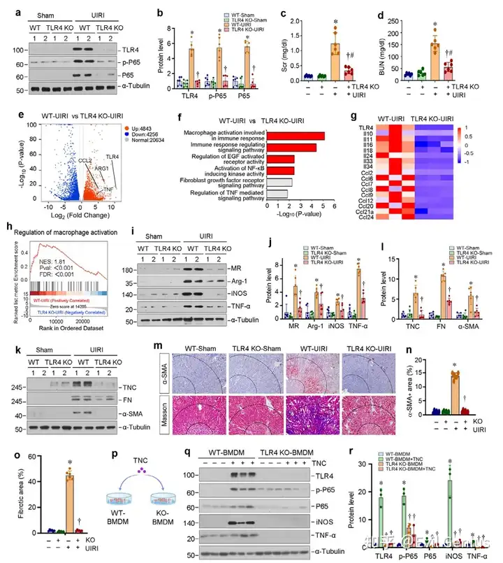 综合药理学、遗传学及细胞特异性干预手段,本研究证实 TNC通过激活巨噬细胞上的TLR4受体驱动NF-κB信号通路,是肾脏损伤后炎症与纤维化进程的核心机制。巨噬细胞特异性TLR4缺失足以产生保护效应,为该通路作为治疗靶点提供了精准的理论依据。