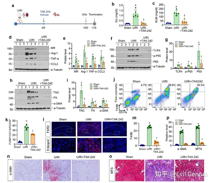结果6、TLR4抑制、敲除及巨噬细胞特异性TLR4缺失均能阻止肾脏炎症与纤维化