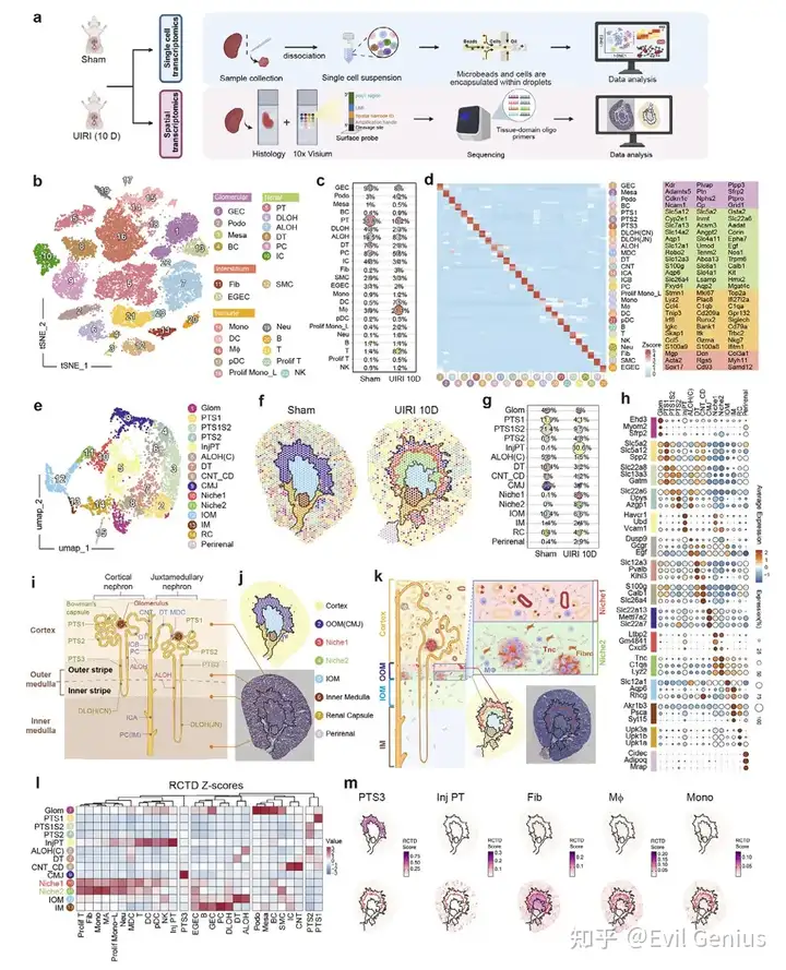 整合单细胞RNA测序与空间转录组技术,系统揭示了肾脏缺血再灌注损伤后促纤维化微环境(Niche)的时空特异性形成机制。