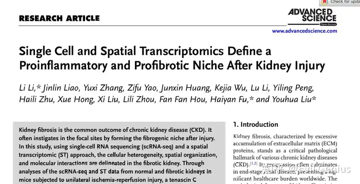 第10篇HD文章--单细胞与空间转录组学揭示肾损伤后促炎促纤维化微环境的形成
