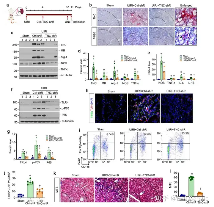 结果5、内源性TNC在体内加剧肾脏炎症(小鼠实验)