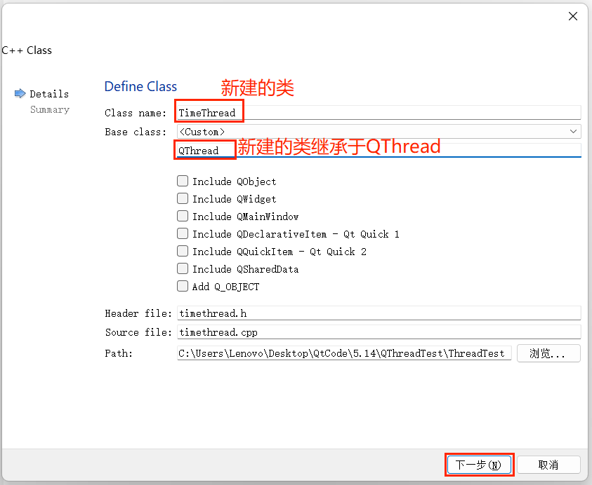 新建TimeThread类,继承QThread: