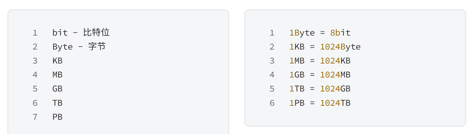 其实也是把内存划分为一个个的内存单元,每个内存单元的大小取1个字节。 计算机中常见的单位(补充):一个比特位可以存储⼀个2进制的位1或者0