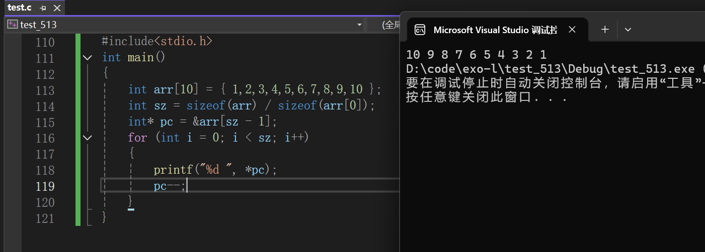 这么一看指针是不是就显得非常简单啦。我们首先取出的是数组最后一个元素的地址,然后不断向前推进即可。