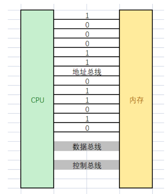 在计算机系统中,CPU(中央处理器)与内存之间的交互至关重要。看这张图,左边是 CPU,右边是内存 。连接它们的是地址总线、数据总线和控制总线。