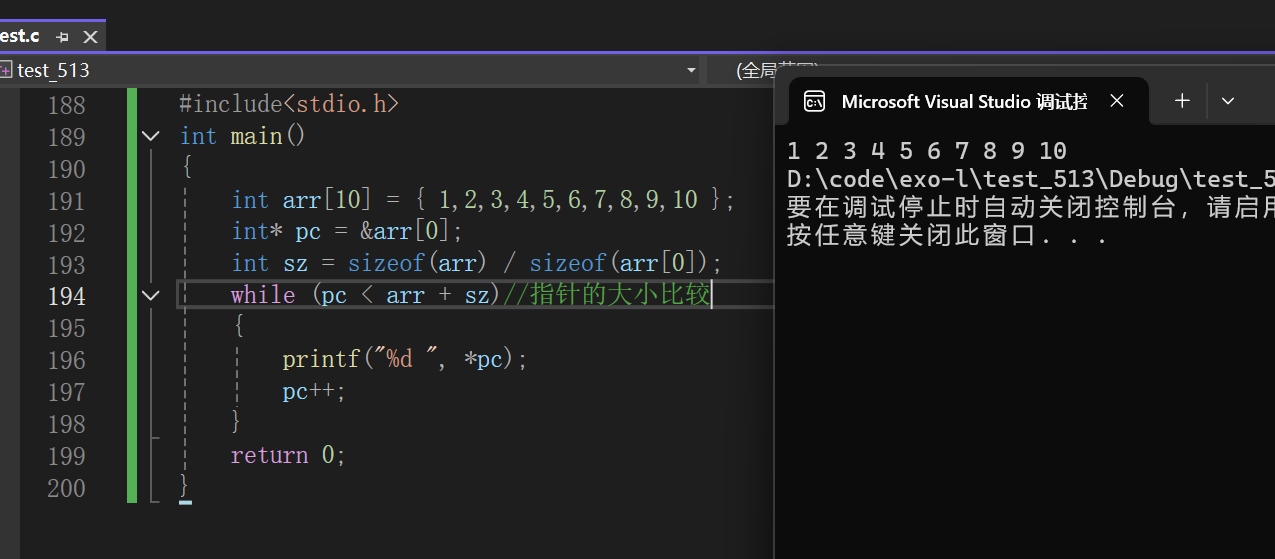 我们先说结论:| 指针-指针 |=俩个指针之间的元素个数。