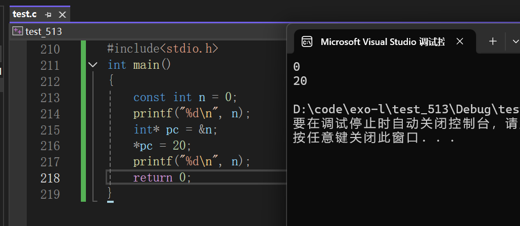 }结论:const修饰指针变量的时候: const如果放在*的左边,修饰的是指针指向的内容,保证指针指向的内容不能通过指针来改变。 但是指针变量本身的内容可变。 const如果放在*的右边,修饰的是指针变量本身,保证了指针变量的内容不能修改,但是指针指 向的内容,可以通过指针改变。