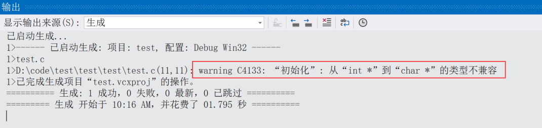 }将上述代码放到VS2022中进行编译便会出现以下的警告: