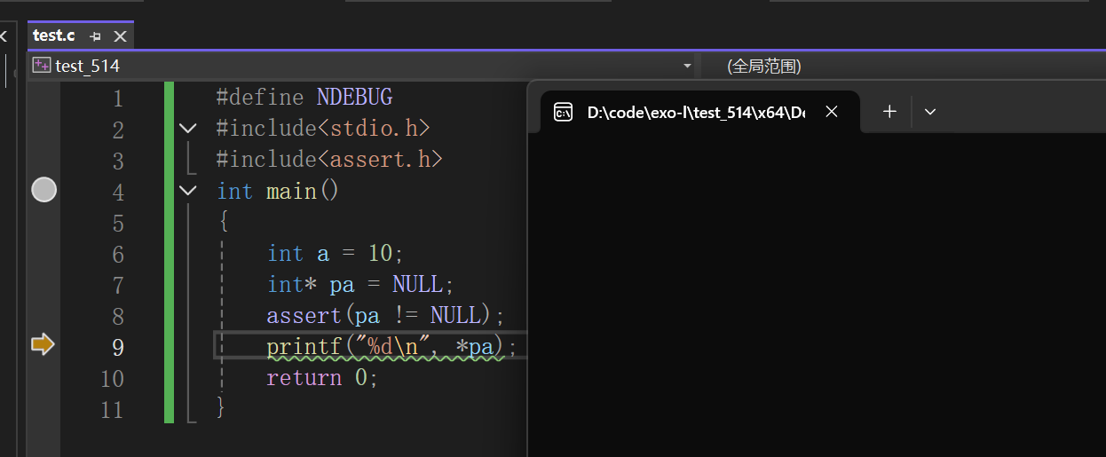 assert( )的缺点是,因为引入了额外的检查,增加了程序的运行时间。 一般我们可以在 Debug 中使用,在 Release 版本中选择禁用 assert 就行,在 VS 这样的集成开 发环境中,在 Release 版本中,直接就是优化掉了。这样在debug版本写有利于程序员排查问题, 在 Release 版本不影响用户使用时程序的效率。