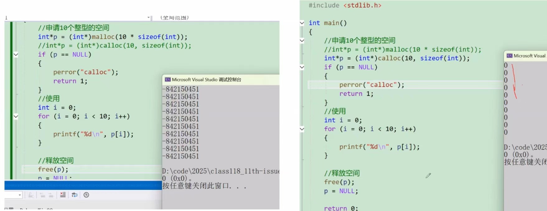 所以如果我们对申请的内存空间的内容要求初始化,那么可以很方便的使用calloc函数来完成任务。