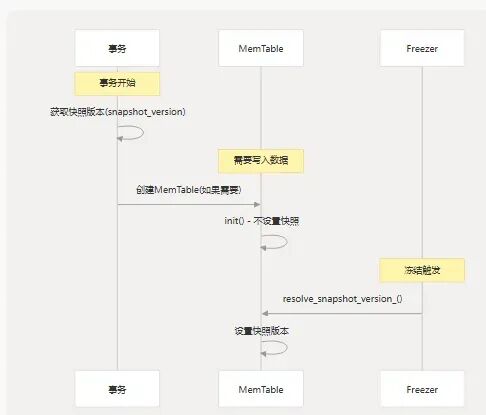 MemTable在冻结时才确定最终的快照版本,这确保了快照版本包含了所有已提交的事务
