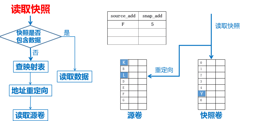 同样原卷继续写入,创建的快照也继续写入,他们写入不同空间,很简单磁盘空间很大,不考虑重复浪费问题。
