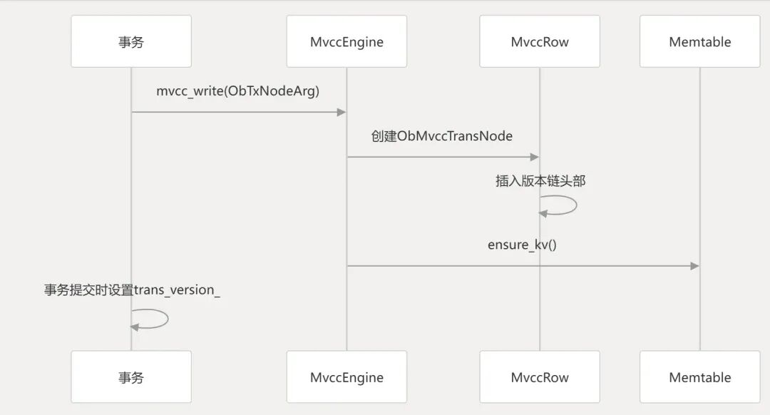 •写入操作:mvcc_write()将新的事务节点插入到MVCC行中