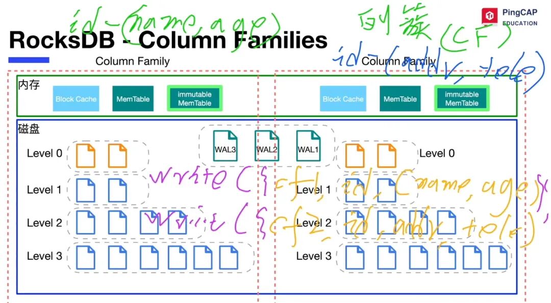 所有列族共享同一个预写日志(WAL),这确保了跨多个列族的写入操作可以具有原子性(要么全部成功,要么全部失败)。