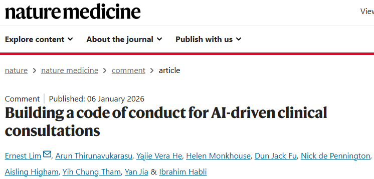 Lim, E., Thirunavukarasu, A., He, Y.V. et al. Building a code of conduct for AI-driven clinical consultations. Nat Med (2026).