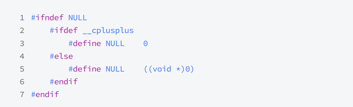 NULL实际是⼀个宏,在传统的C头文件(stddef.h)中,可以看到如下代码: