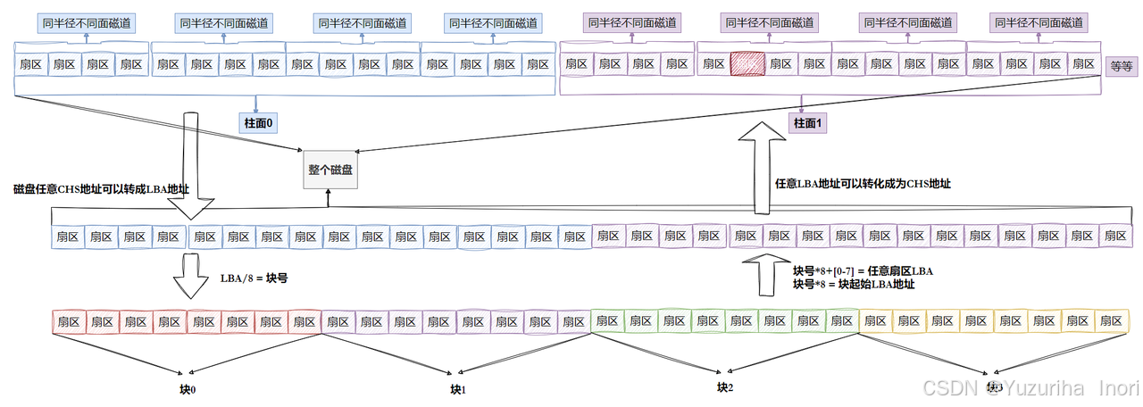 柱面号C = LBA // (磁头数 * 每磁道扇区数)【就是单个柱面的扇区总数】