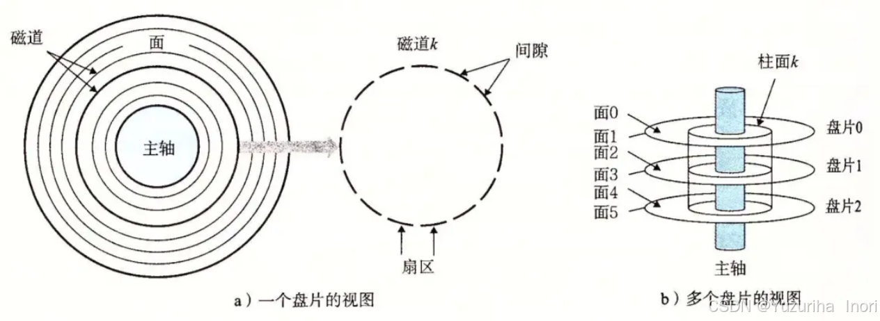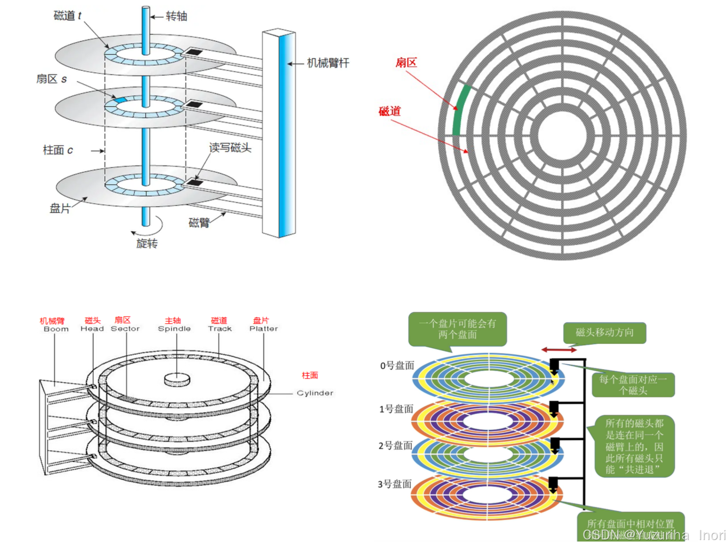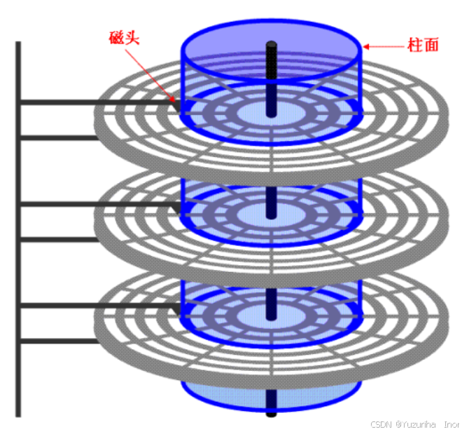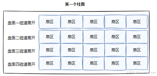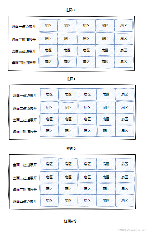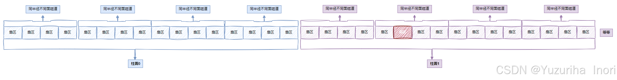 柱面:磁道构成柱面,数量上等同于磁道个数