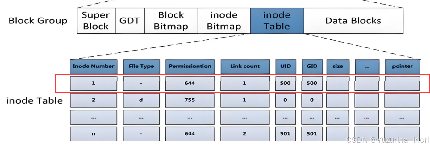 文件都是存储在“块”中,那么文件的属性也自然存储在这里面。其中,存储文件信息的区域就叫做inode,意味“索引节点”。