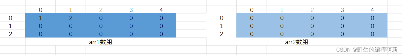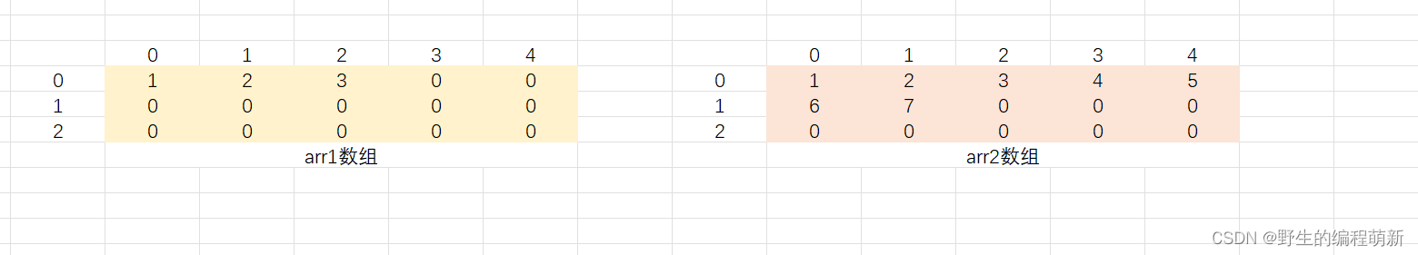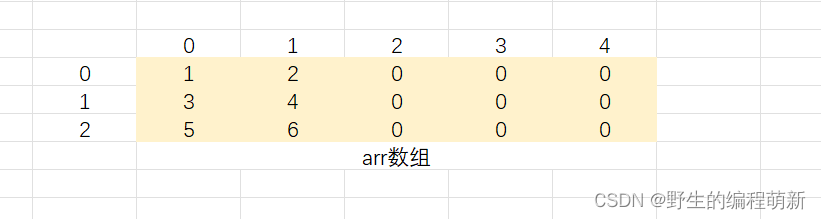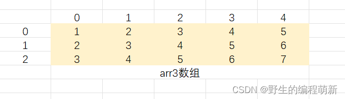 我们只要能够按照⼀定的规律产⽣所有的⾏和列的数字就⾏;以上⼀段代码中的arr数组为例,⾏ 的选择范围是0~2,列的取值范围是0~4,所以我们可以借助循环实现⽣成所有的下标。