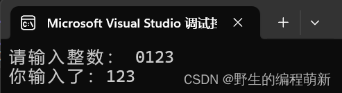 }这个程序很简单:通过scanf函数来读取整数值并显示整数值,我们运行一下看看: