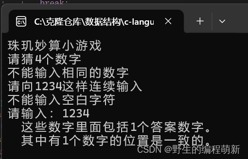 printf("不能输入相同的数字\n");