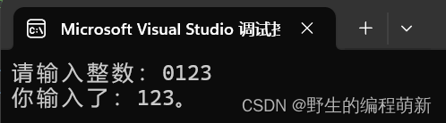 printf("你输入了:%d。\n",atoi(temp));
