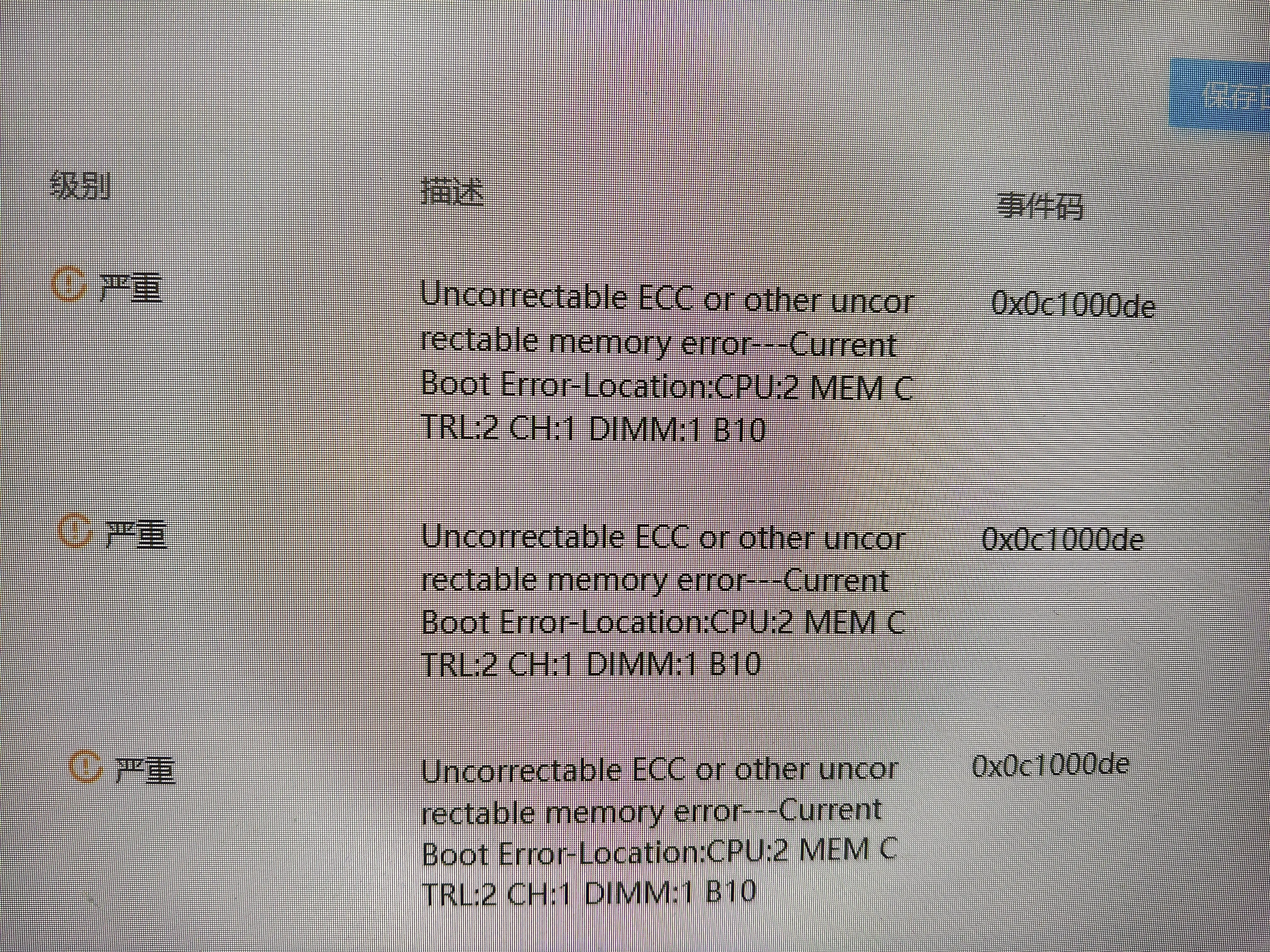 从服务器硬件层面(不受操作系统影响)导出所有硬件相关的事件记录,包括你遇到的内存 ECC 错误、故障告警等。可以看到故障的时间戳、事件类型、故障组件、严重级别等更详细的硬件日志信息。