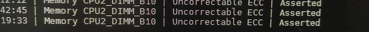 核心故障(关键信息) 日志中明确显示 内存硬件错误: 错误类型:Uncorrectable ECC(不可纠正的 ECC 内存错误,属于硬件级故障) 故障位置:Memory CPU2_DIMM B10(服务器 CPU2 对应的第 B10 号内存插槽的内存条)