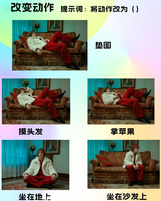 坐着、坐在椅子上、站立、抱膝、蹲着、战斗姿态、架着腿坐、招手、托腮、挥手、提裙、手扶着腰、坐在地上、拍照、弓背、站立弯腰、拉伸、趴着睡觉、趴着、仰着睡觉、侧躺、侧着睡觉、二郎腿、涂口红、跪姿、化妆、手扶着椅子、手拍手、手扶着头、手舞足蹈