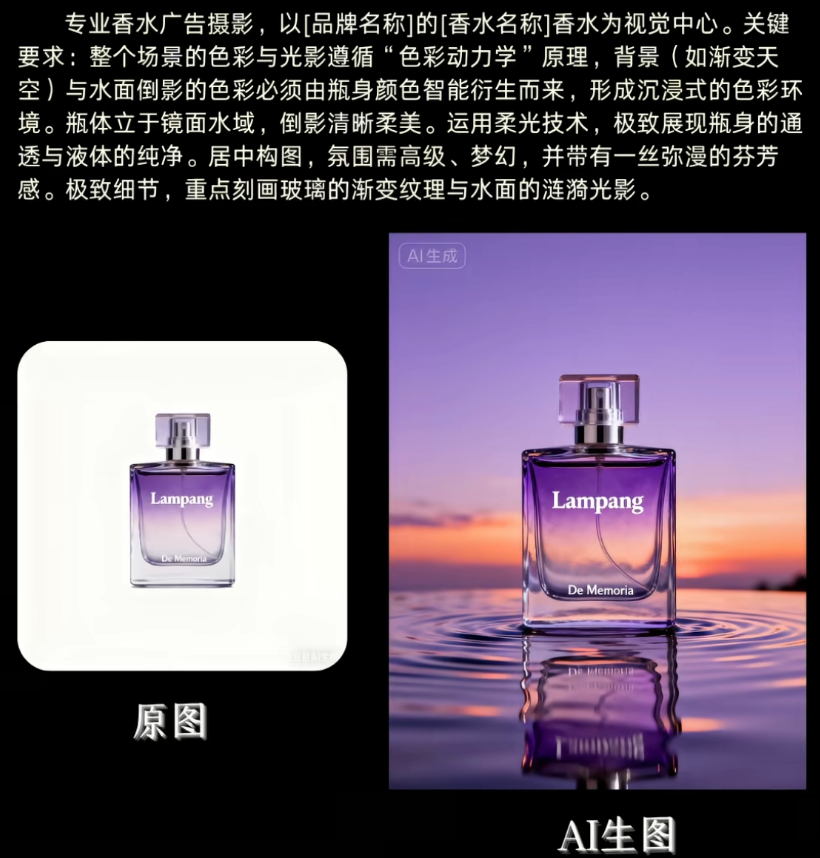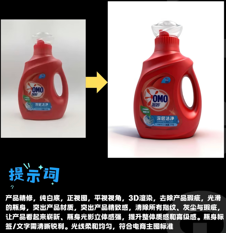 - 提示词示例:「商业产品摄影风格,一瓶保湿面霜,白色简洁背景,光线均匀,突出产品质感,分辨率1080x1080,高清细节」