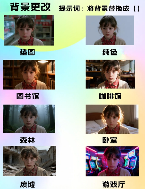 沙漠中的古老庙宇、古老的煤矿、繁华都市的高楼大厦、复古咖啡馆内、秋天的乡村小路、繁忙的机场大厅、古老的图书馆、豪华的餐厅内部、夜晚的海滩、绿色的乡村草地、雪山中的滑雪场、幽静的森林小屋、传统的中国庭院、海洋中的珊瑚礁、现代化的城市广场