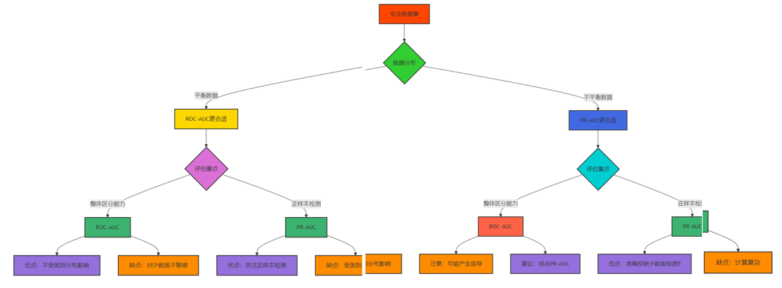安全场景 | 核心需求 | 数据不平衡程度 | 误判成本 | 推荐指标 | ROC-AUC适用性 | PR-AUC适用性 |