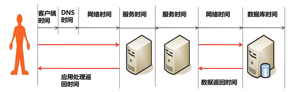 用一个公式总结:总响应时间 = 前端展现时间 + 网络时间(请求) + 服务器处理时间 + 数据库处理时间 + 网络时间(响应)