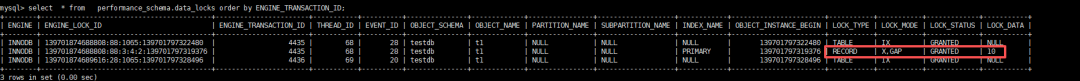 监控锁信息:使用 performance_schema.data_locks 实时观察锁状态: