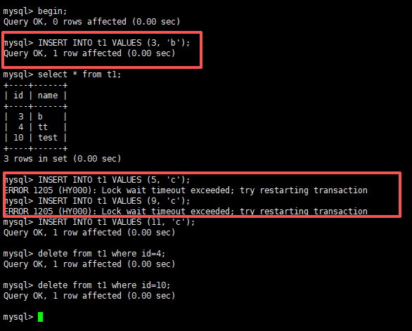 INSERT id=11 | ✅ 成功 | 成功,不在锁范围内 |