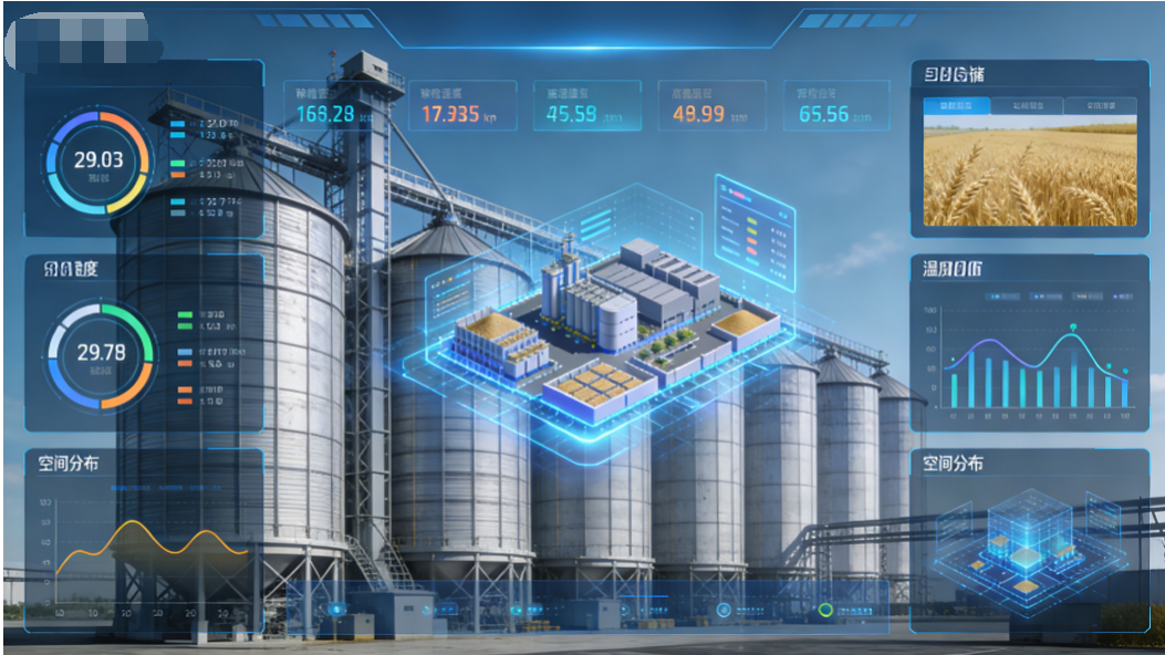 环境监测方面,系统对接整合各仓储业务系统数据,通过传感器网络等物联网技术,远程实时监测粮食温度、湿度、霉变、氮气、压力等情况。同时基于粮仓三维场景实现监测数据的直观感知、风险隐患的及时响应和告警事件的精准处置,并且通过与智能控制系统及空间智能算法的联动,实现低温生态储粮、降低储粮能耗和安全生产事故的发生。