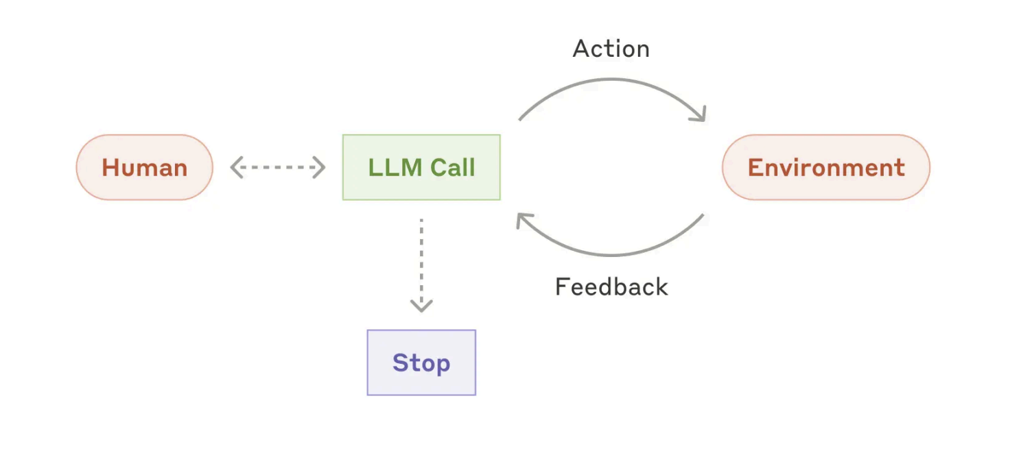 Agent 是具备自主决策能力的AI实体。依靠大模型的认知与推理能力,动态决定任务执行的流程、工具调用时机与方式,拥有核心决策权。与工作流的“被动执行”不同,Agent具备“感知-决策-执行-反馈”的闭环能力,能根据任务进展、外部环境变化,实时调整执行策略。