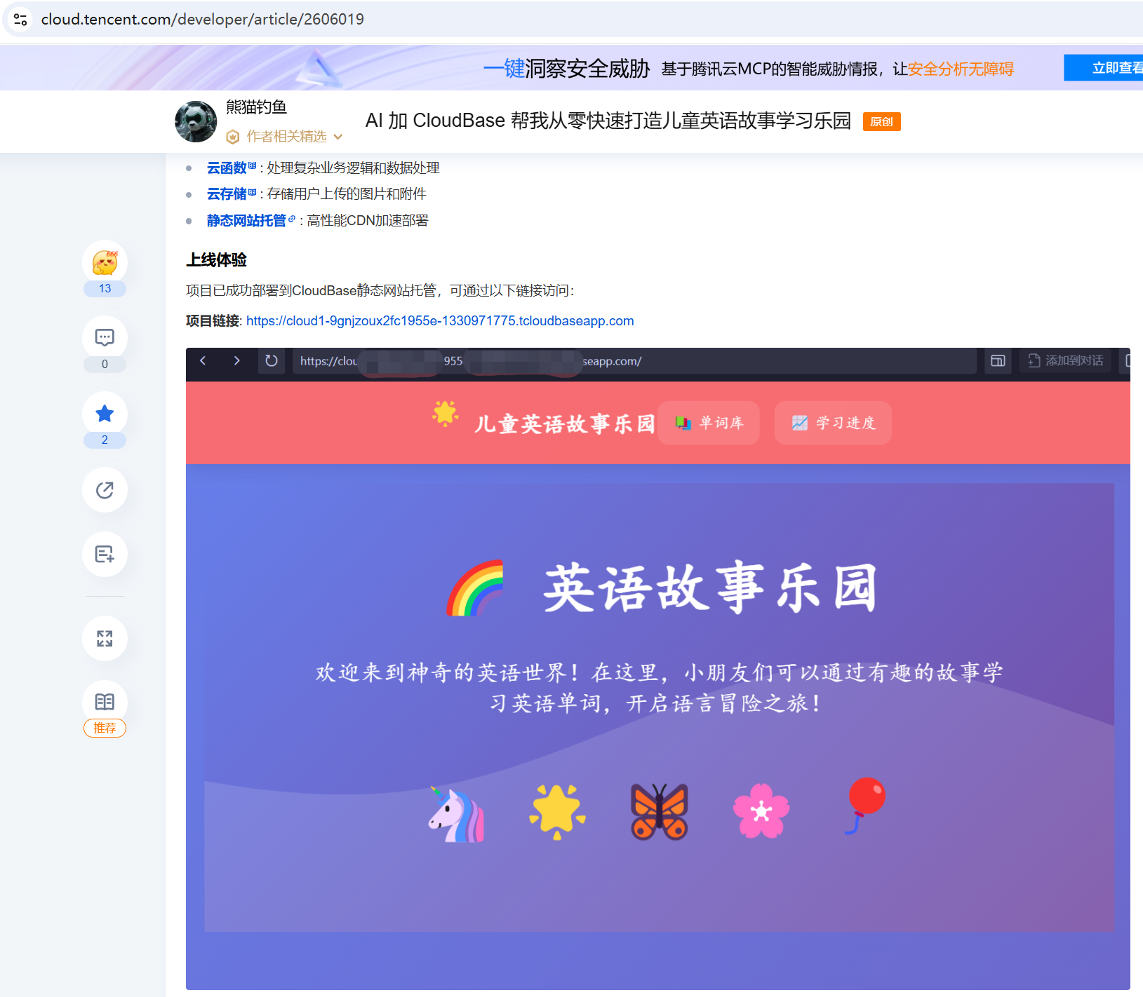 还有这个:AI 加 CloudBase 帮我从零快速打造儿童英语故事学习乐园。我觉得也是一个实用功能。