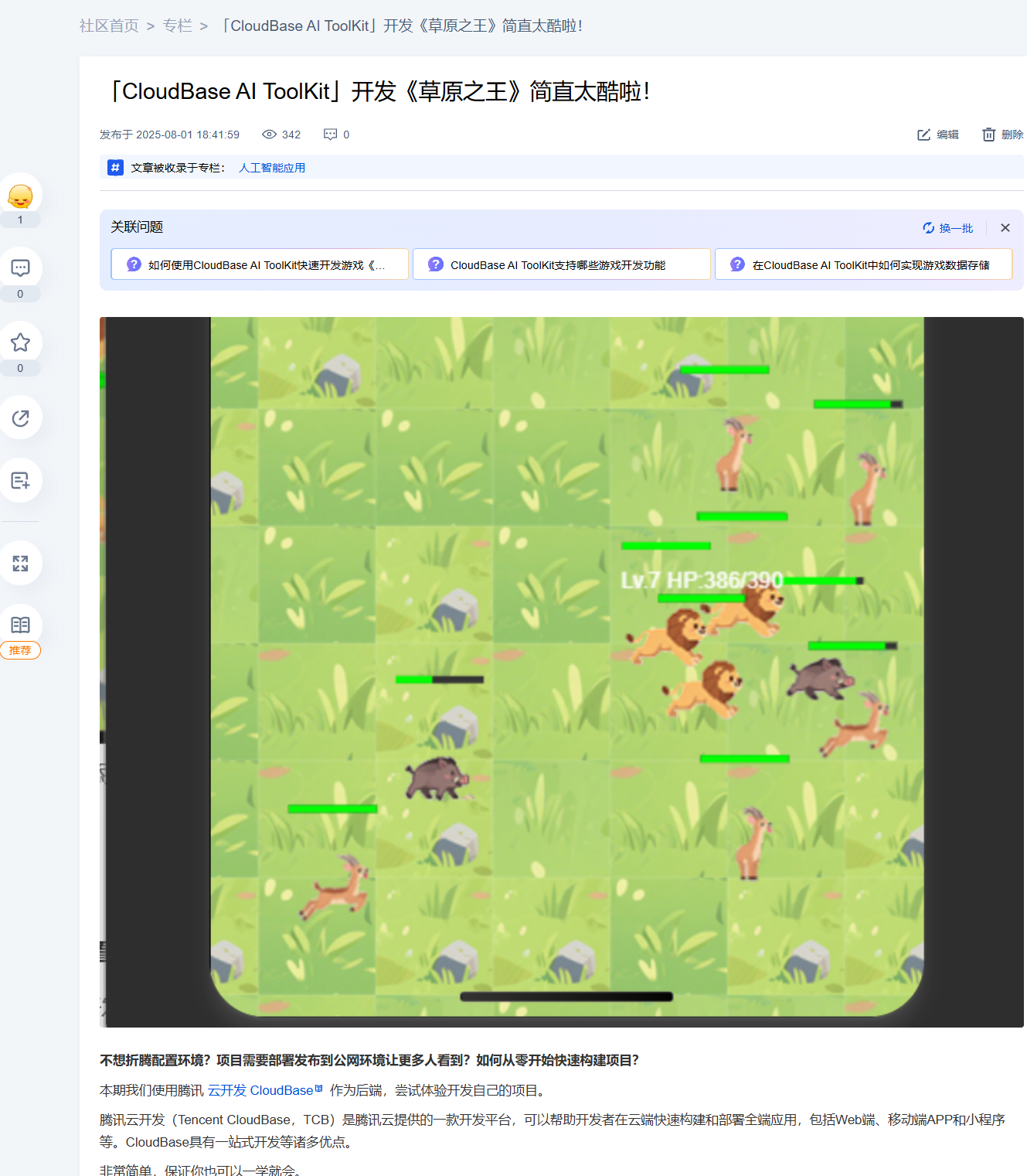 还有这个我费了好大功夫才学会CloudBase的正确打开方式,做的有趣的app小游戏:「CloudBase AI ToolKit」开发《草原之王》简直太酷啦!