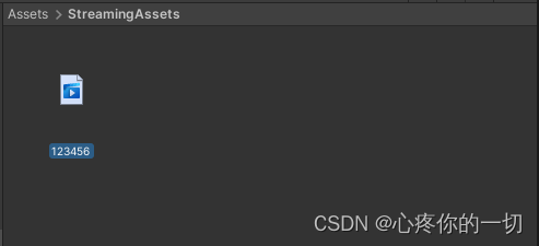 }(1)注意路径,需要把视频放到StreamingAssets文件夹内,设置好自己视频的路径 (2)使用了Path.Combine来拼接两个路径,关于这个API还有更多应用就不累述 (3)错误路径写法:“file://” + Application.streamingAssetsPath + “/123456.mp4”