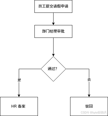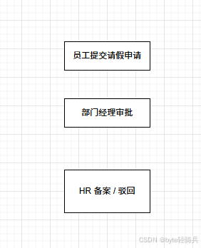- 再拖 2 个矩形,分别放在下方,依次写 “部门经理审批”“HR 备案 / 驳回”;