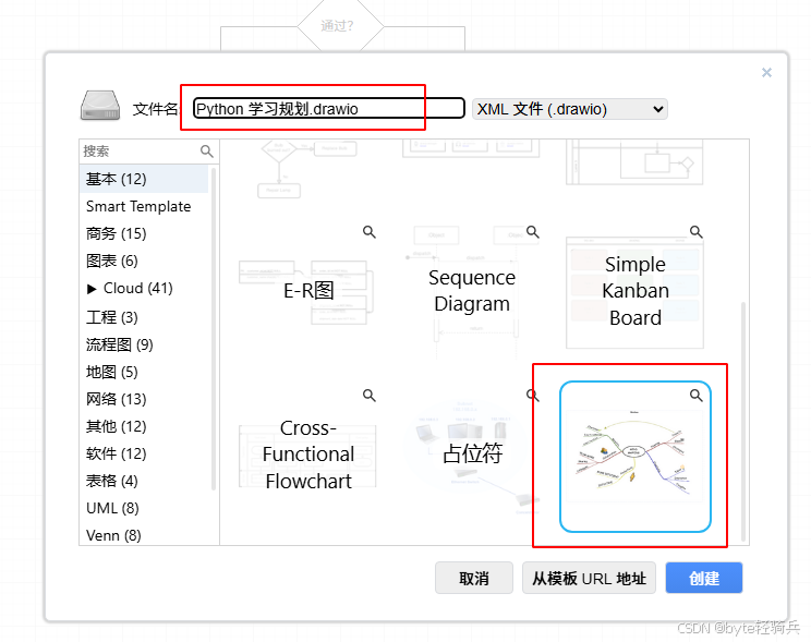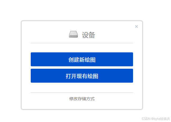 - 首次打开会弹出 “保存位置” 选择框,新手选 “Device”(保存在本地电脑)即可,点击 “Create new diagram” 进入绘图页面;