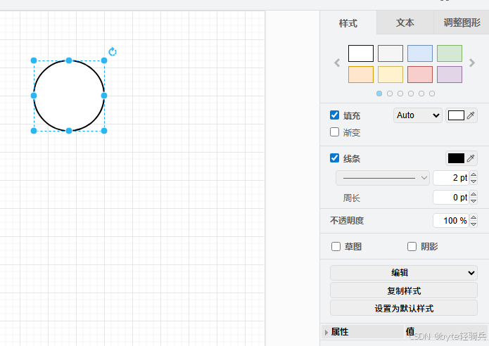4. 右侧属性面板:选中图形 / 连接线后,可调整颜色、大小、线条样式、字体等(比如给矩形改填充色、给连接线加箭头)。