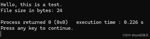 printf("File size in bytes: %ld\n", position);