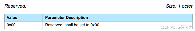 “Reserved”字段是一个在蓝牙通信协议中常见的保留字段,其值必须被设置为0x00。在使用蓝牙通信协议时,需要特别注意这个字段,并确保其值被正确设置,以确保协议的兼容性和稳定性。
