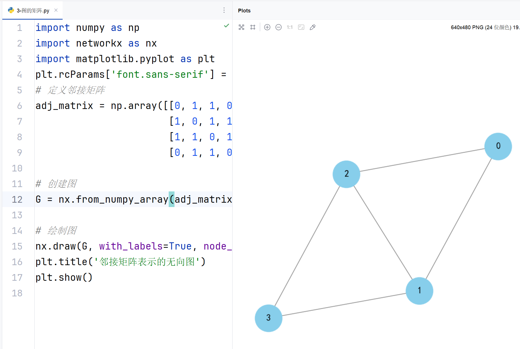 案例描述 :用邻接矩阵表示一个无向图,并绘制其图形。