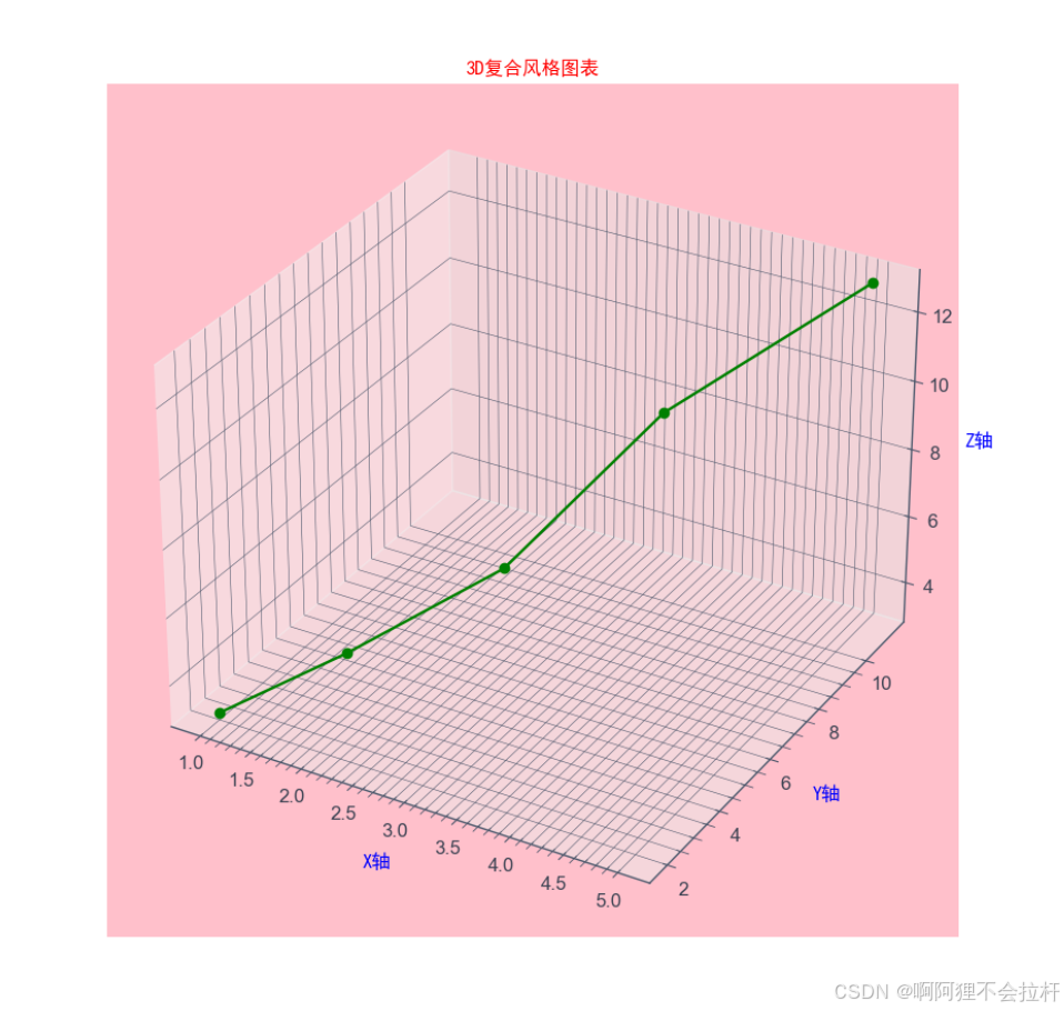 ax.set_title('3D复合风格图表', fontsize=16, color=catppuccin_colors['text'],font='SimHei')