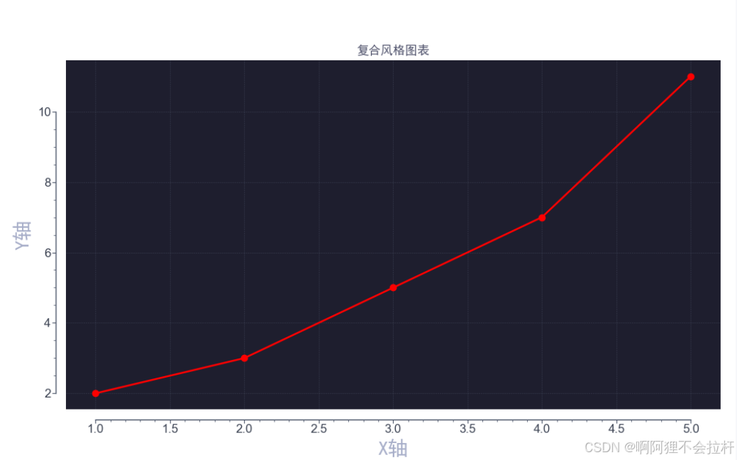 plt.title('复合风格图表', color=catppuccin_colors['text'], fontsize=30, fontweight='bold',font='SimHei')