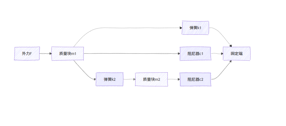 根据牛顿第二定律,可以建立该系统的微分方程:
